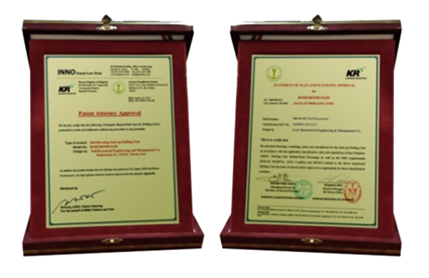 - Certificate of Technological Proficiency for development of ROSEMOND SA-20 Jack Up Design from IROST
