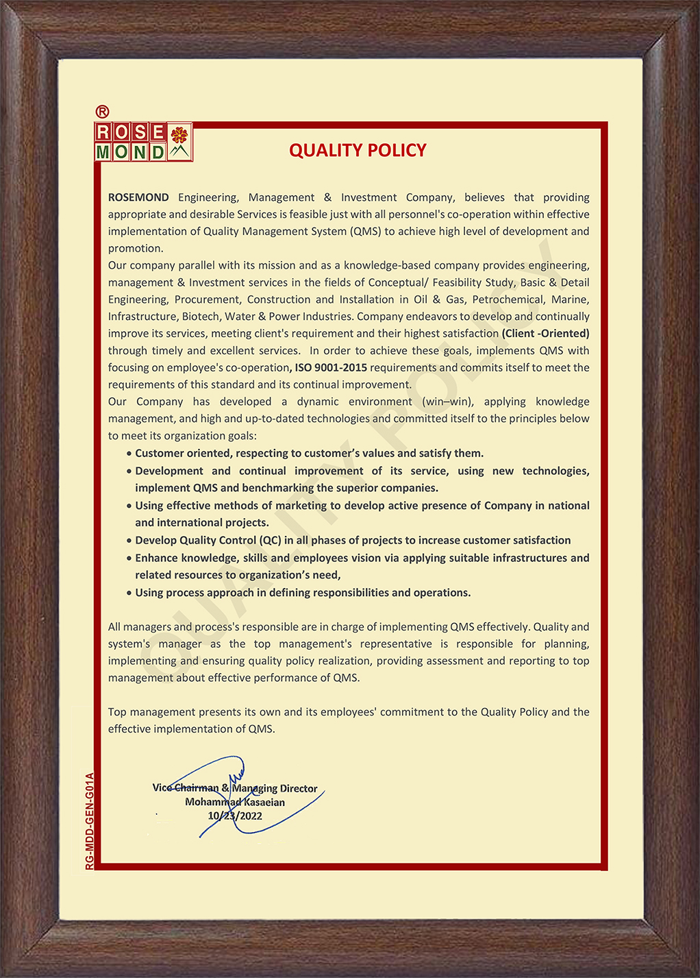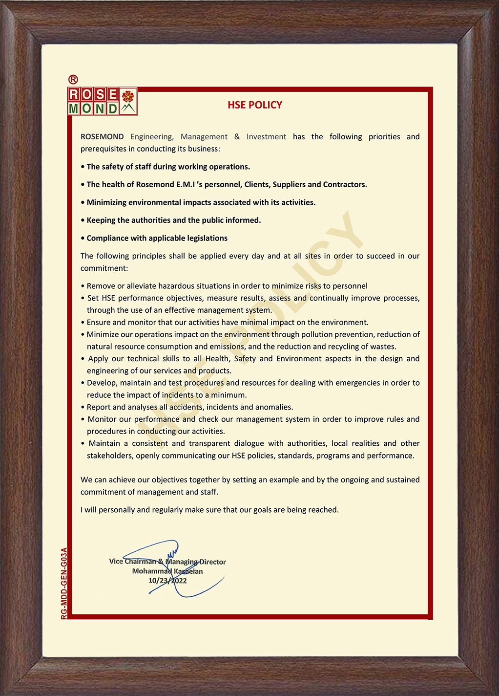 Rosemond E.M.I is fully committed to its HSE policy established and implemented to secure a healthy safe working environment.